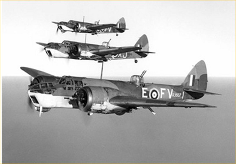 Dużą część wyprodukowanych samolotów przeznaczono na eksport, między innymi siły powietrzne Belgii zakupiły pewną ilość maszyn. Warto też wspomnieć, że tuż przed wojną Polskie Siły Powietrzne były zainteresowane zakupem tej konstrukcji. Produkcję samolotu zakończono w 1940 roku, a jego kolejne wersje nieznacznie różniły się od pierwowzoru. W 1939 roku pięć dywizjonów 1 Grupy Bombowej, wyposażonych w maszyny Fairey Battle, zostało przebazowanych na lotniska we Francji celem wsparcia brytyjskiego Korpusu Ekspedycyjnego w jego walkach w północnej Francji. Używane były głównie do bombardowań celów punktowych, takich jak mosty, przeprawy, pojedyncze obiekty. Jednak szybko okazało się, że samoloty te nie spełniały wymagań nowoczesnego pola walki. Słabe uzbrojenie obronne, zbyt mały udźwig bomb, niewielka prędkość oraz brak płyt pancernych chroniących załogę przed ogniem nieprzyjaciela były czynnikami przynoszącymi wysokie straty własne i mizerne efekty użycia tych samolotów. Podczas wykonywanych zadań były wręcz dziesiątkowane przez niemieckie myśliwce oraz artylerię przeciwlotniczą. Straty były tak duże, że wkrótce zakazano lotów dziennych tymi maszynami. Warto wspomnieć, że polskie dywizjony bombowe: 300, 301, 304 i 305 w początkowej fazie ich działalności były wyposażone w te maszyny. Dywizjony 300 oraz 301 brały udział w nalotach bombowych na porty francuskie, gdzie latem 1940 roku Niemcy zgromadzili okręty, statki i barki desantowe przeznaczone do planowanego desantu na Wyspy Brytyjskie . Jesienią 1940 roku brytyjskie Siły Powietrzne wycofały z linii samoloty Fairey Battle i przekazały 743 maszyny do Kanady, gdzie służyły, jako samoloty szkoleniowe. Dywizjony bombowe 2 Grupy Bombowej były wyposażone, między innymi, w samoloty Bristol Blenheim, produkowane w zakładach Bristol Aeroplane Company . Były to dwusilnikowe samoloty o układzie dolnopłata, napędzane dwoma silnikami Bristol Mercury, każdy o mocy 840 KM. Załoga składała się z trzech osób: pilota, nawigatora, który pełnił także rolę bombardiera oraz strzelca pokładowego. Samolot osiągał prędkość maksymalną 425 km/h i zabierał z sobą sześć bomb o masie 113kg. Ogółem wyprodukowano 1194 samoloty tego typu, z których wiele wyeksportowano do Finlandii, Jugosławii, Grecji i Turcji. Warto zaznaczyć, że samolot Blenheim Mk IV z brytyjskiego dywizjonu bombowego 139, wykonał pierwszy lot bojowy lotnictwa brytyjskiego w II wojnie światowej, który odbył się 3 września o godz. 10.30, kilka chwil po wypowiedzeniu wojny Niemcom przez Wielką Brytanię. Maszyna ta wystartowała w celu rozpoznania floty niemieckiej w porcie Wilhelmshaven. Z kolei 4 września 1939 roku 15 samolotów Bristol Blenheim dokonało pierwszego nalotu bojowego przeciw niemieckim okrętom w Wilhelmshaven. Samoloty Bristol Blenheim używano także w lotnictwie obrony wybrzeża (Coastal Command). W dniu 11 marca 1940 roku jeden z nich, jako pierwszy brytyjski samolot zatopił niemiecki okręt podwodny U-31. Ponadto sześć dywizjonów 2 Grupy Bombowej wyposażonych w Bristol Blenheim wchodziło w skład brytyjskiego korpusu ekspedycyjnego we Francji w 1940 roku. Jednostki te, podobnie jak dywizjony wyposażone w samoloty Fairey Battle, poniosły bardzo duże straty podczas kampanii francuskiej. Zaprojektowane jako szybkie, lekkie bombowce dzienne, maszyny koncernu Bristol okazały się przestarzałe już w chwili wybuchu wojny, toteż po 1940 roku były kierowane głównie do wykonania mniej znaczących zadań. W 1941 roku uczestniczyły w dziennych operacjach ofensywnych lotnictwa brytyjskiego nad Francję, a także w nalotach na Niemcy. Pod koniec 1941 roku maszyny Bristol Blenheim zostały wycofane z operacji nad Europą zachodnią.