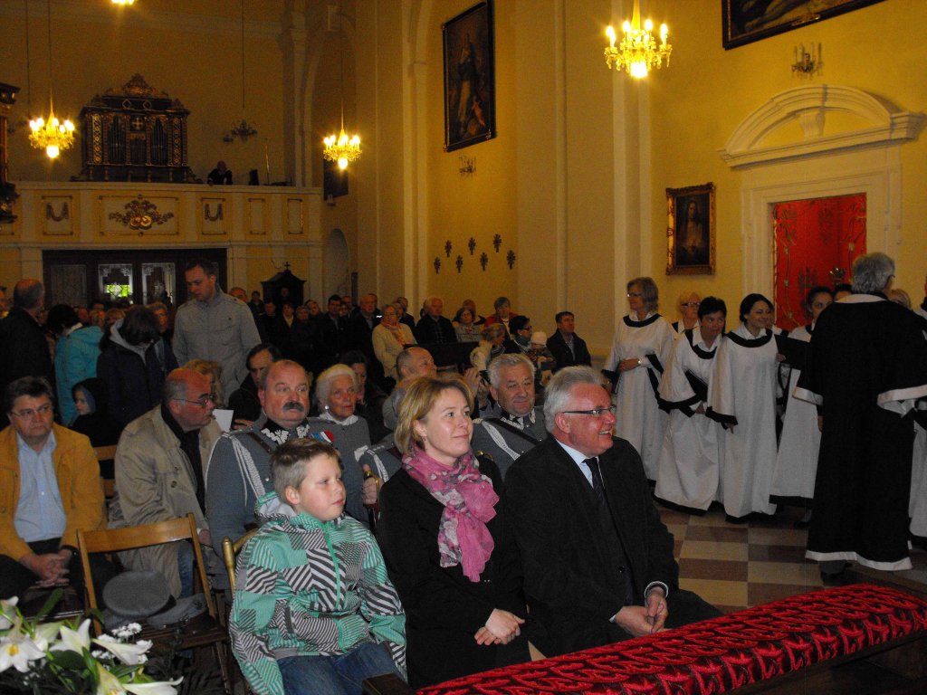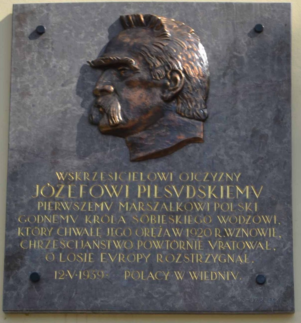 Na zdjęciu inicjatorka i prekursor Danuta Nemling, a obok Niej prezes Okręgu Pomorskiego Związku Piłsudczyków RP TPJP w Gdyni Julian Aleksander Michaś, którym zawdzięczamy, że tablica poświęcona Józefowi Piłsudskiemu Pierwszemu Marszałkowi Polski po raz kolejny zaistniała na ścianie kościoła w Kahlenbergu. Pierwotnie została odsłonięta w 1939 roku, a zdjęta na polecenie urzędnika państwa Polskiego w 1972 r.